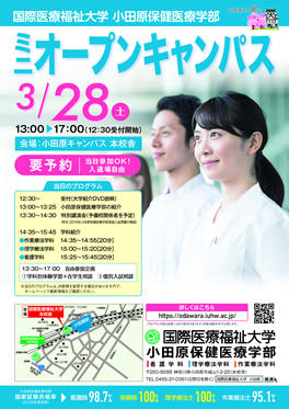 3月28日(土)に開催を予定しておりました小田原キャンパスのミニオープンキャンパスは、このたびの新型コロナウイルス感染症の状況等を鑑み、開催延期とすることといたしました。