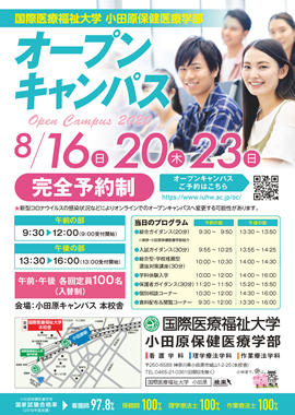 小田原キャンパスでは、9月20日(日)27日(日)にオープンキャンパスを予定しております。近日中にお申し込みの受付を開始します。今しばらくお待ちください。