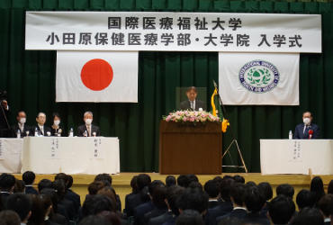 小田原キャンパスでは4月5日、前日までの雨模様から一転して青空が広がる中、城内校舎で小田原保健医療学部・大学院の入学式が行われました。 入学したのは、学部新入生217人(看護学科87人、理学療法学科87人、作業療法学科43人)と、小田原・熱海キャンパスに所属する大学院新入生15人。