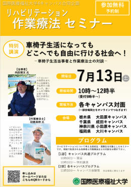 高校生および受験生を対象とした「リハビリテーション(作業療法)セミナー」を開催いたします。