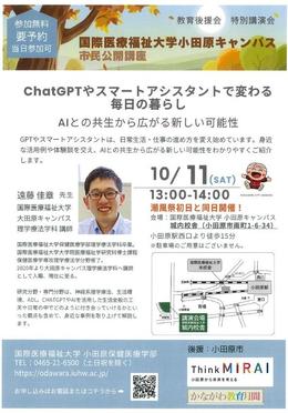 10月11日(土)に小田原キャンパス「城内校舎」にて市民公開講座を開催します。